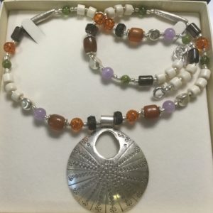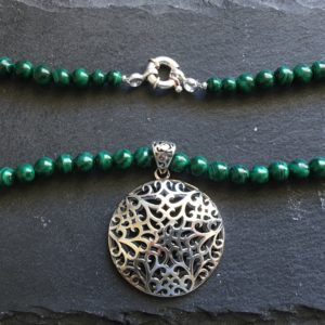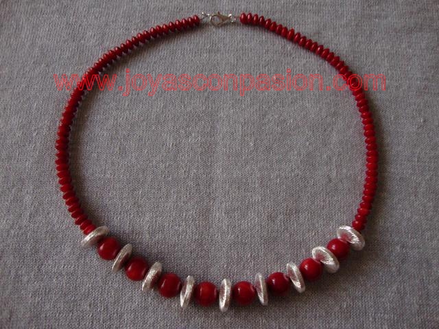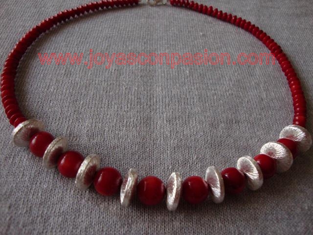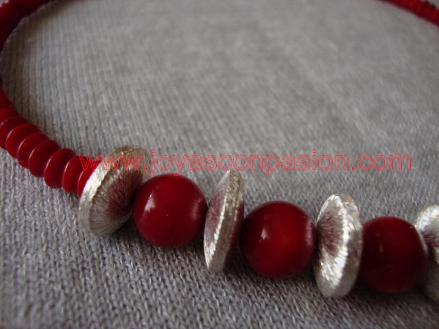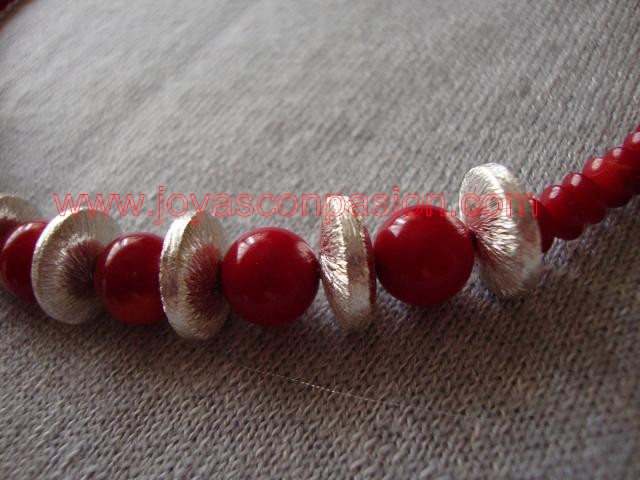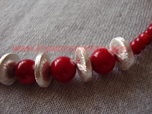 collar de coral rojo y plata