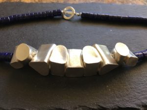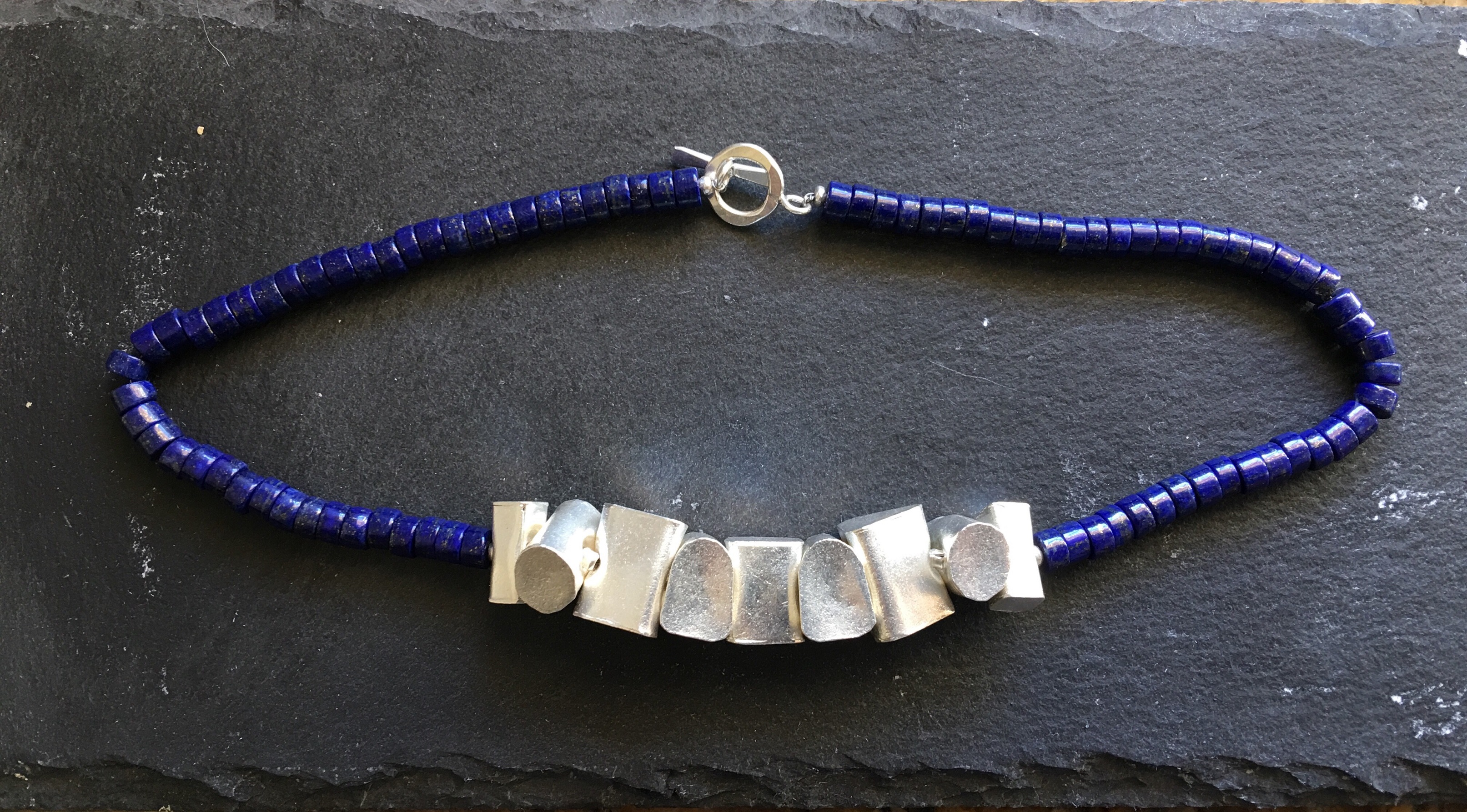 Collar de 7 piezas de plata pura distintas. Las cuentas del collar es de lapislázuli de calidad extra AAA+